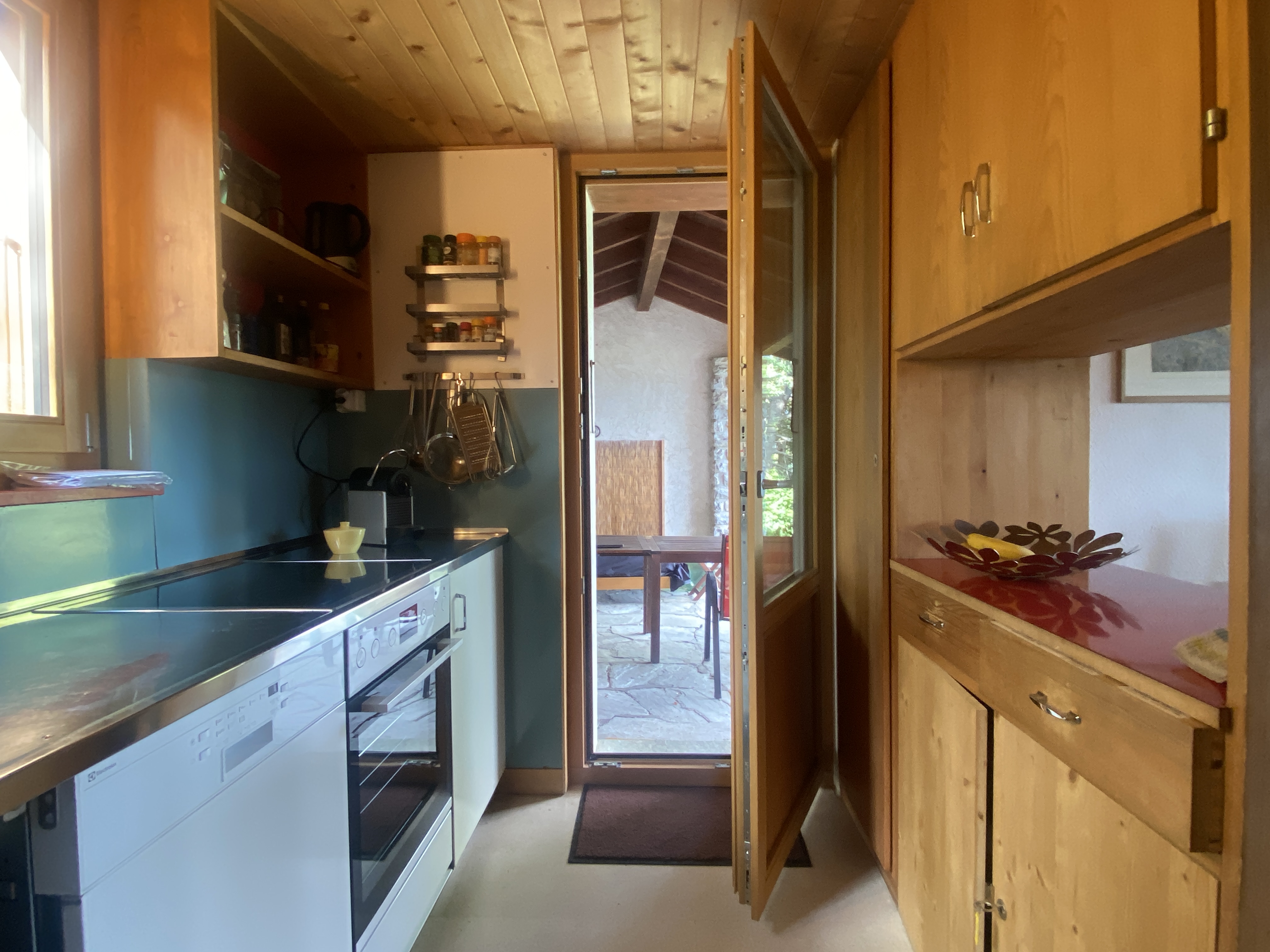 In der Küche wird der Platz wird optimal genutzt. Es gibt unterer anderem einen Kühlschrank (und einen zweiten mit Tiefkühlfach im Keller), einen Glaskeramik-Kochherd mit Backofen sowie eine Geschirrspülmaschine.